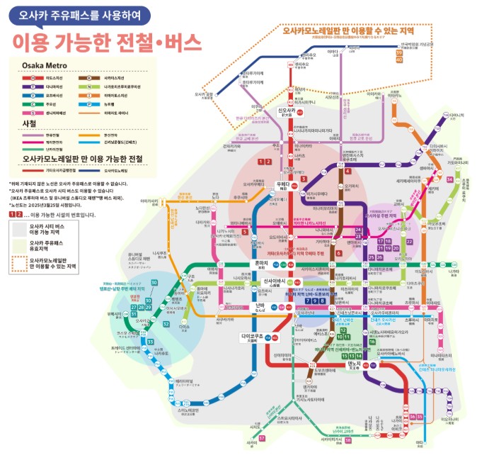 ※ 오사카 지하철 전 노선(코스모 스퀘어역~유메시마역 구간 이용 불가, 2025년까지 운행일정 연기)
