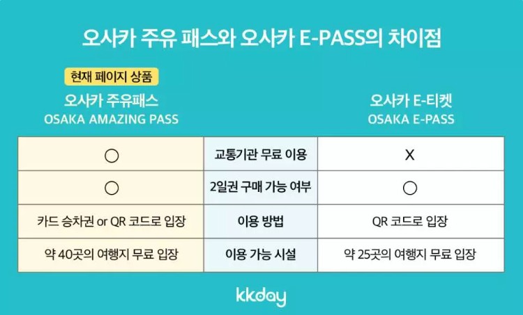 오사카 주유패스와 오사카 E-PASS의 차이점을 확인해 보세요