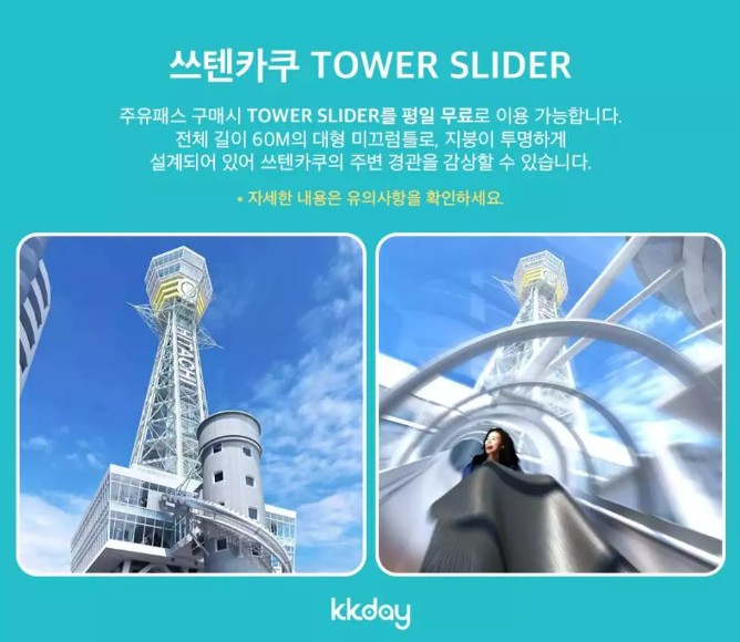 ▪️쓰텐카쿠 TOWER SLIDER 대형 미끄럼틀 무료 입장 체험은 '평일'에만 이용 가능합니다. 특별 야외 전망대는 현장에서 추가 요금이 부과됩니다.